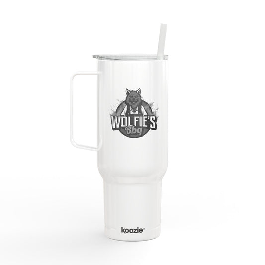 Engraved 40oz Insulated Tumbler with Lid — Wolfie's BBQ Logo